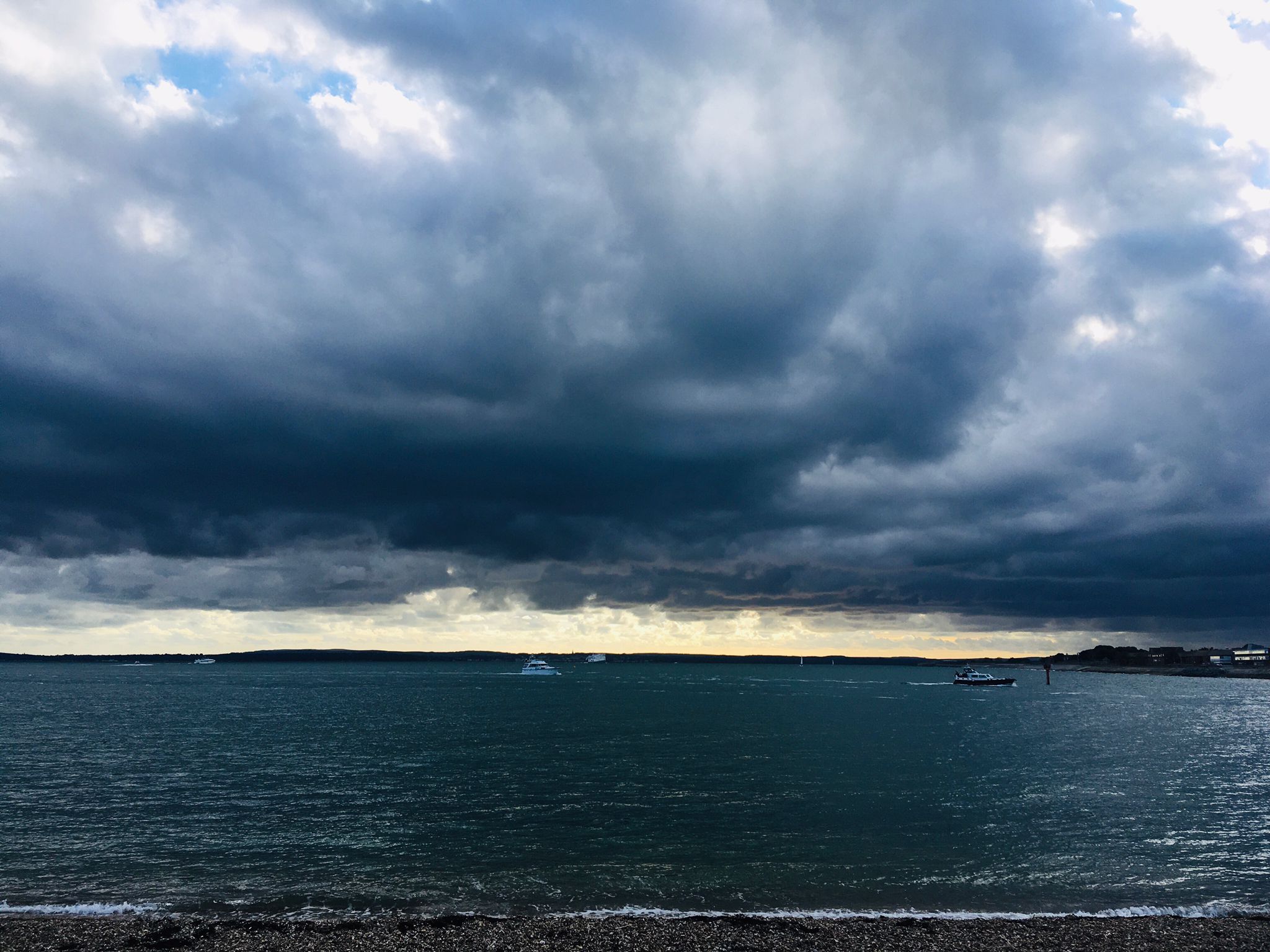Looking across the Solent from Portsmouth to the Isle of Wight, the heavy storm clouds gather.