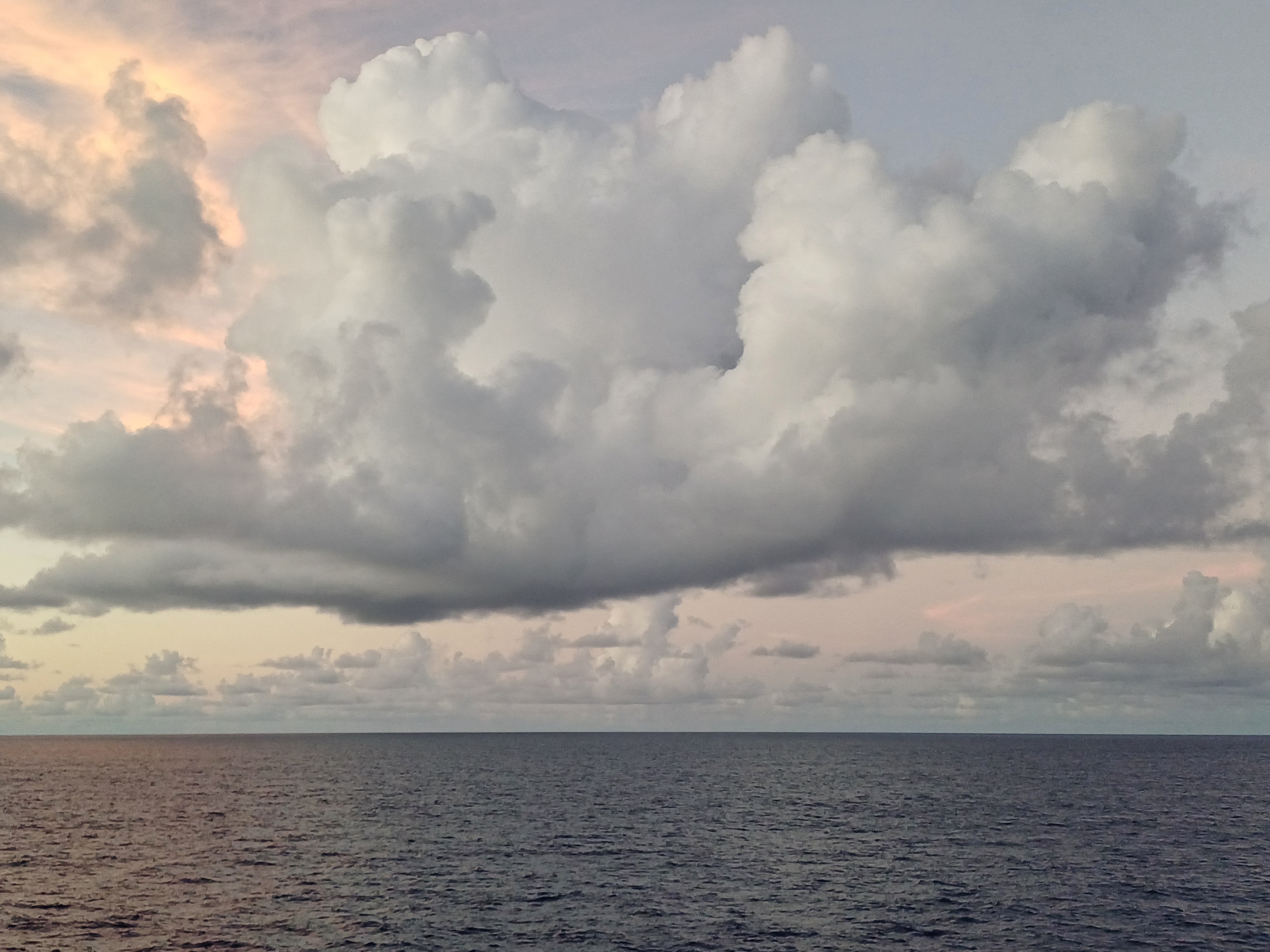 'Just a not so big cumulous cloud, out in the Pacific Ocean - somewhere in the generl area of the Northern Mariana Islands. (Just after the sun had had gone down - with one edge of the cloud glowing in a lovely salmony-pink from a glorious sunset!)