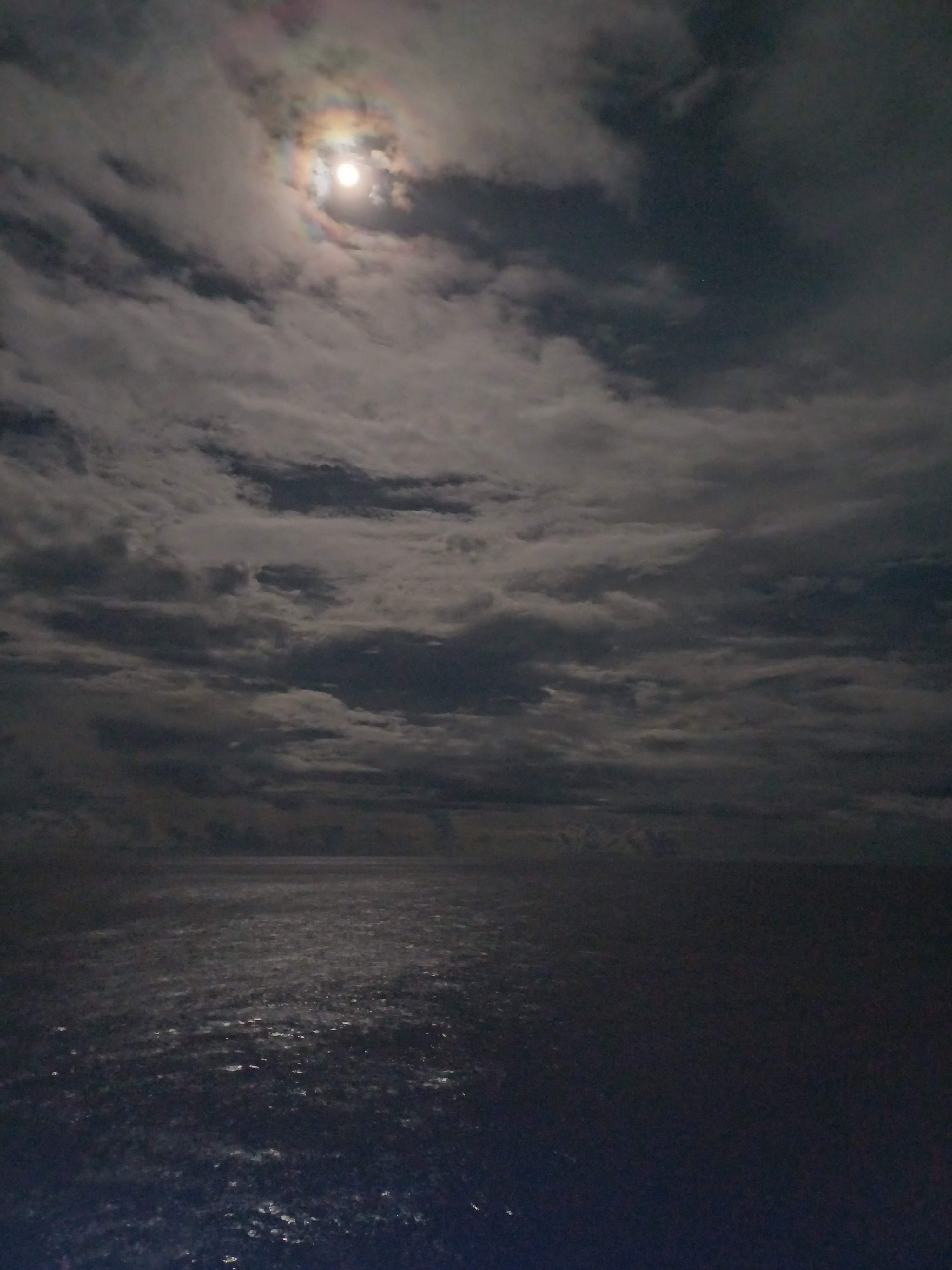 An atmospheric shot, I thought, with the nearly full moon reflecting it's soft light on a calm tropical Pacific Ocean