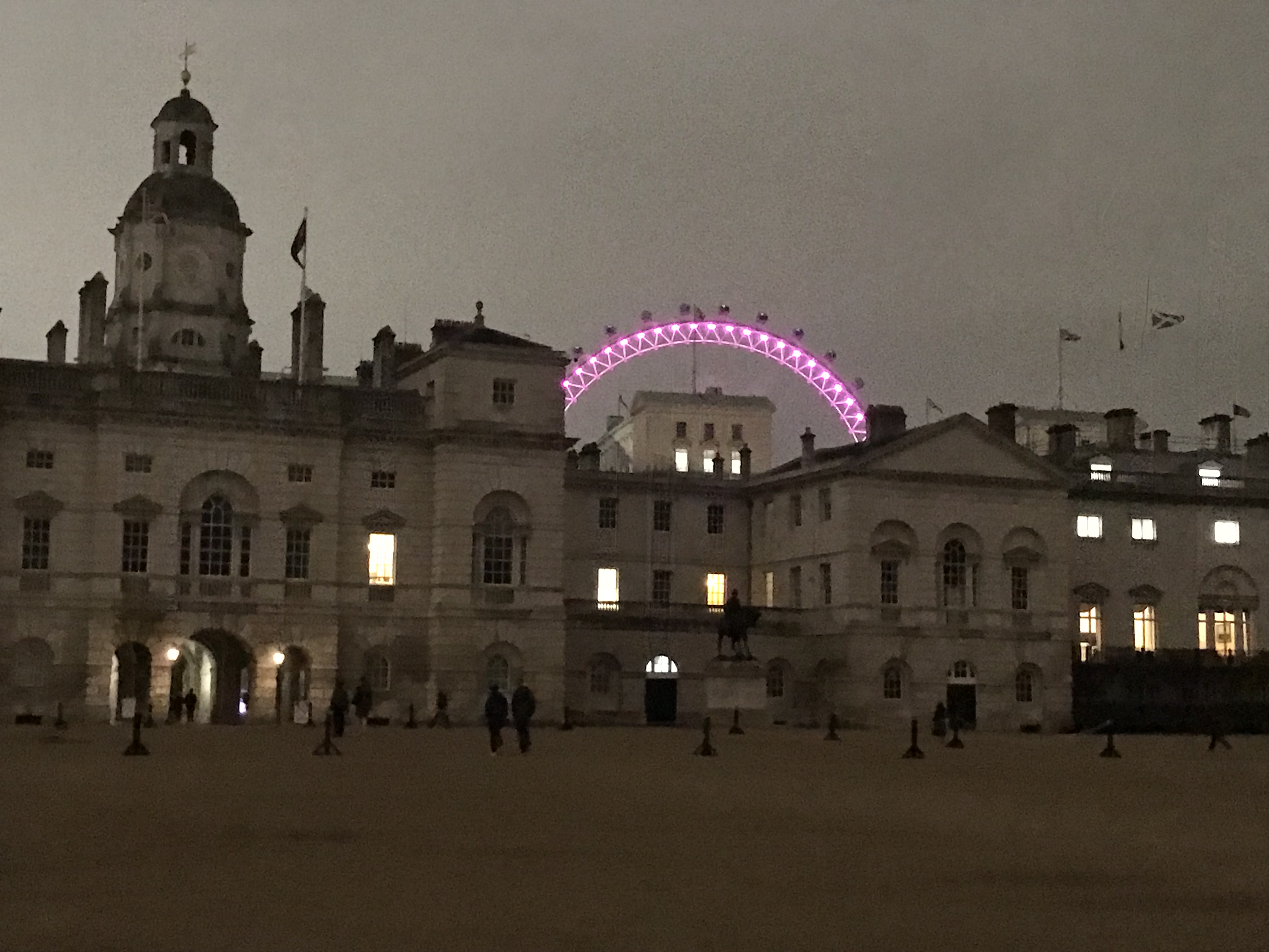 The “London Eye” is seen from Horse Guards’ Parade on a cloudy and damp December night