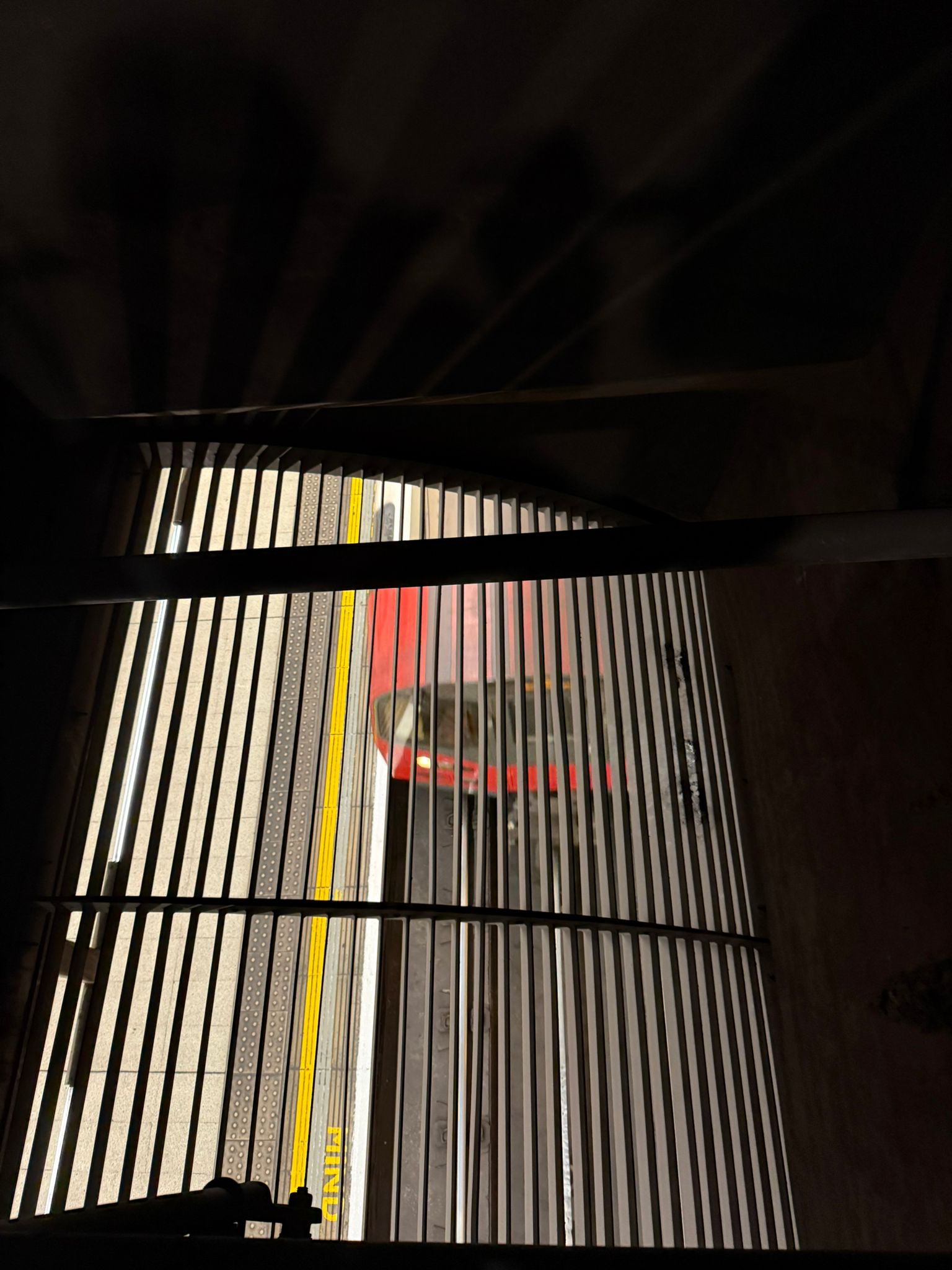 This is a Southbound Northern Line train at Charing Cross. This unique view is taken from a gallery above the platform which is visited by one of the London Underground “Hidden London” tours.