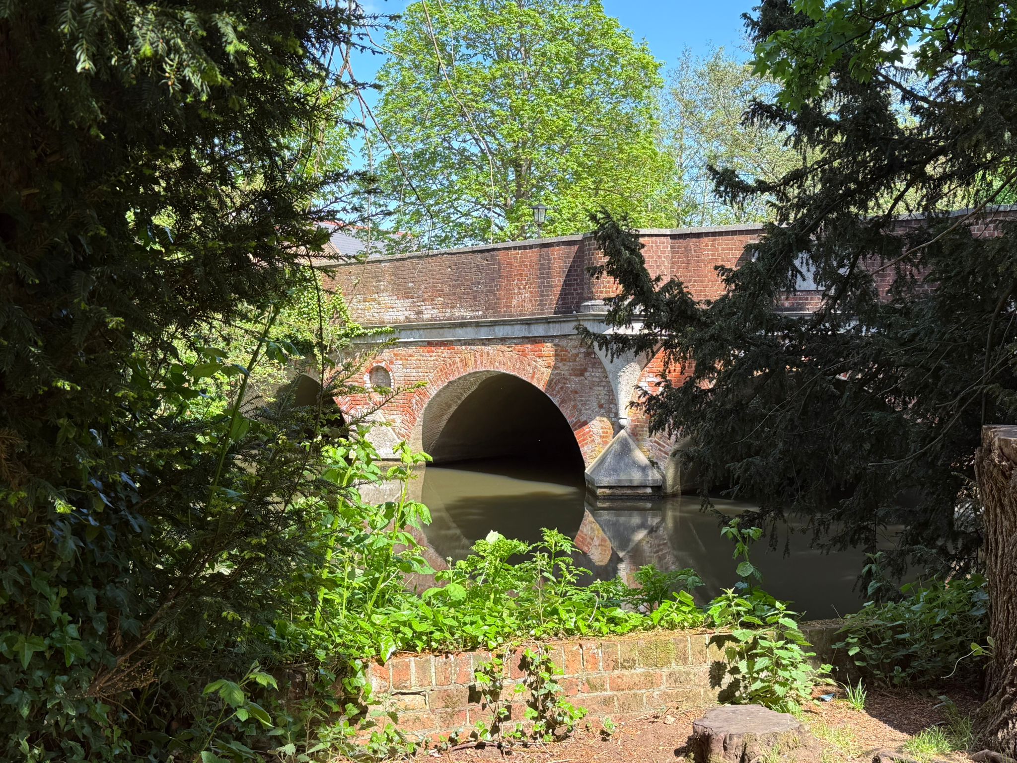 The River Wey rises as the South Wey in nearby Haslemere, and the North Wey at Alton in Hampshire. They merge at Tilford in Surrey and flow ultimately into the River Thames at Weybridge.