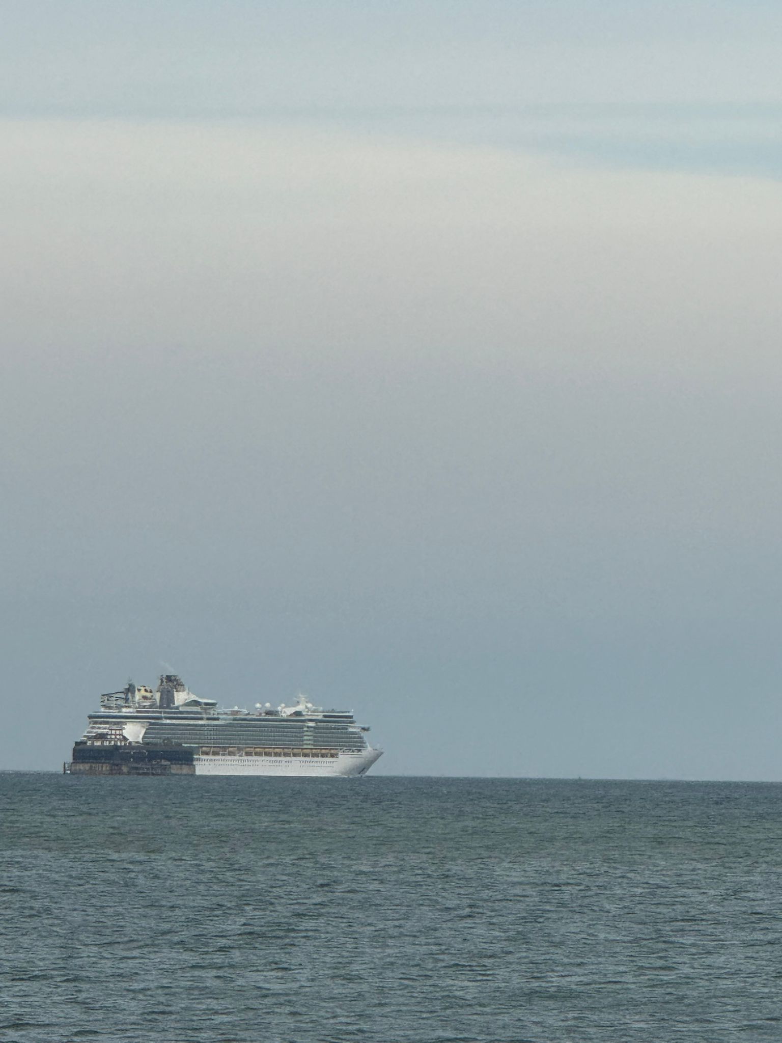 Royal Carribean’s “Independence of the Seas” passes and dwarfs “No Man’s Land Fort” in the Solent. It is sailing from Southampton to Bilbao and then around Spain before returning to Southampton in a few days time.