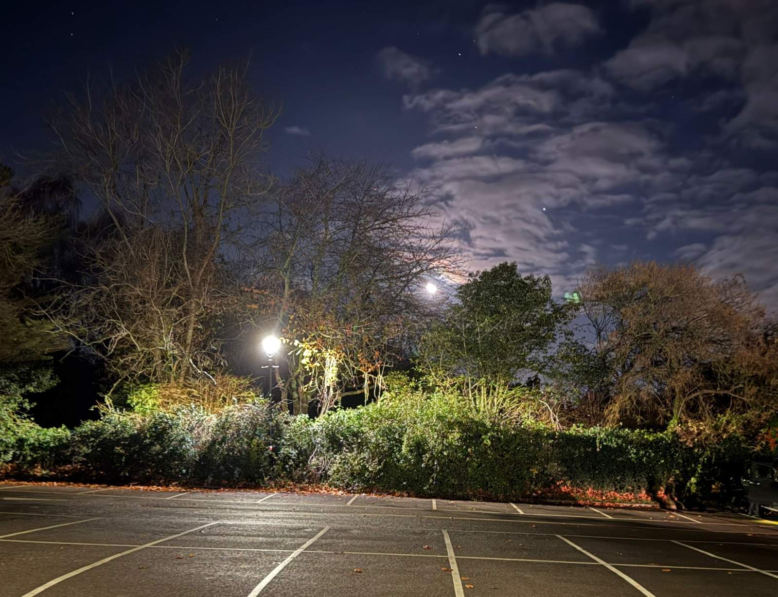 Seen from Farnham the combination of Moonlight, lamplight and a guest appearance of the planet Venus at about 45 x Degrees to the right of the Moon.